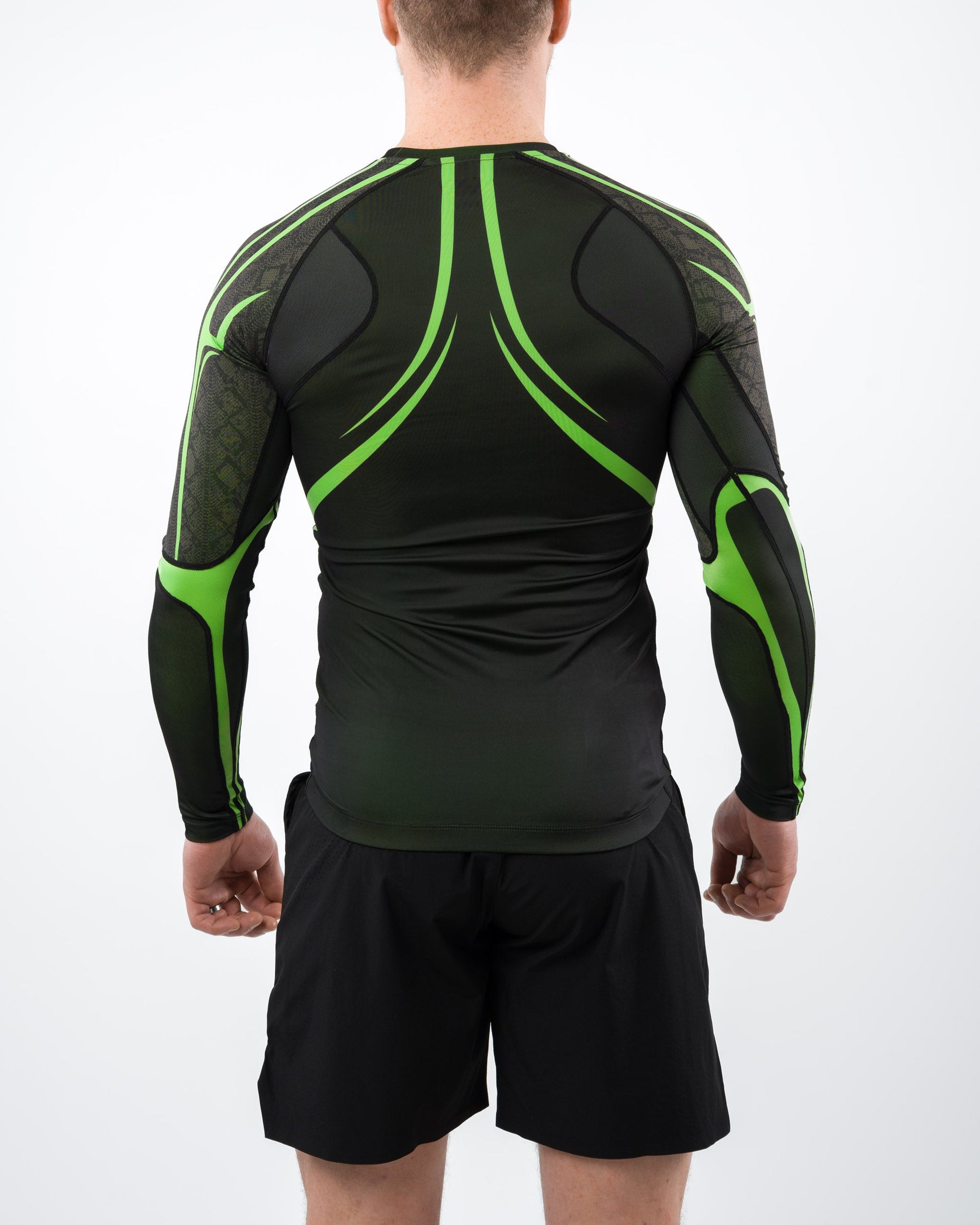 Anaconda Evolution Long Sleeve Rashguard in Black & Green for BJJ practitioners