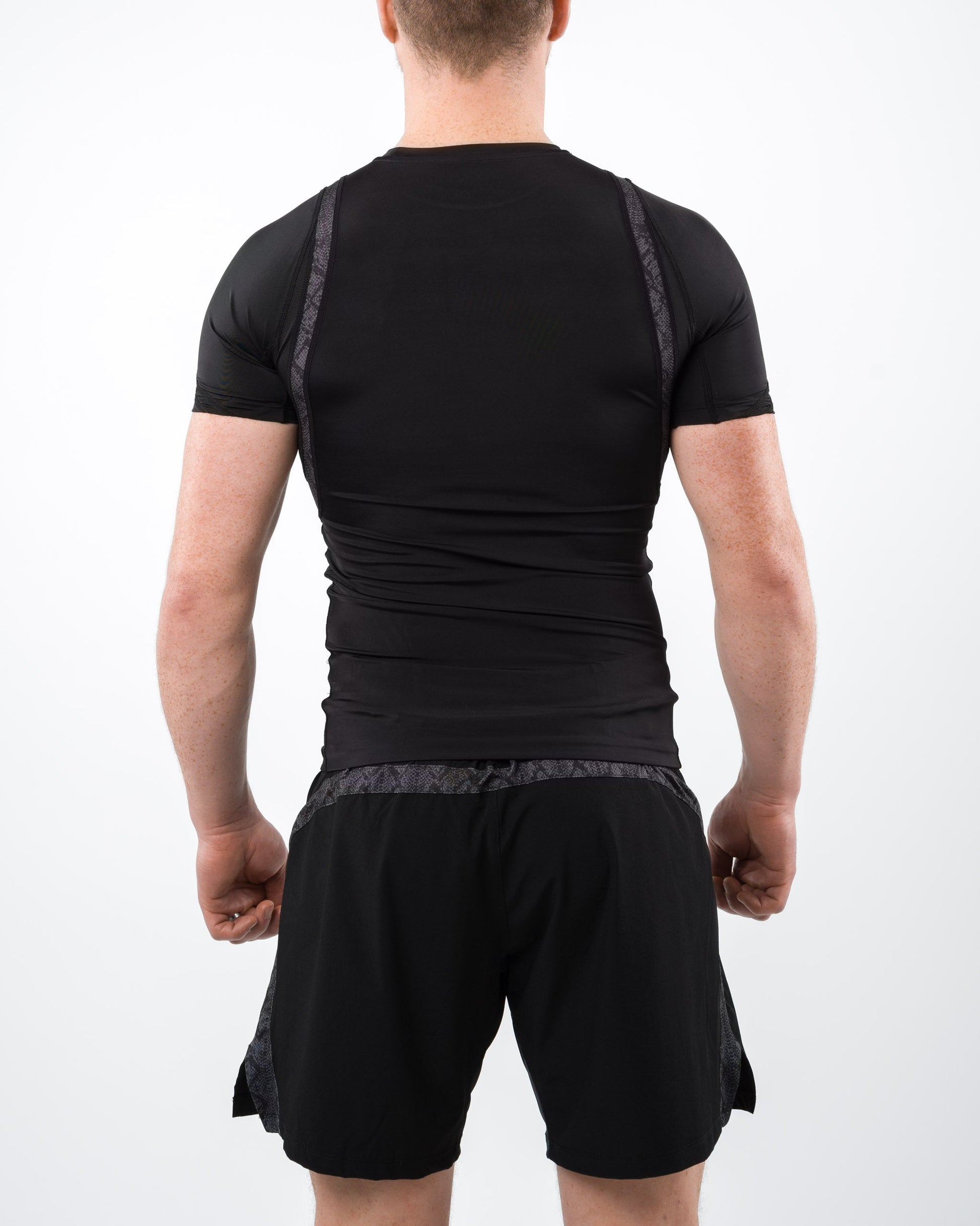 Breathable mesh ventilation placed in high sweat zones to keep you cool during hard rounds, overlaid with a tonal snakeskin print